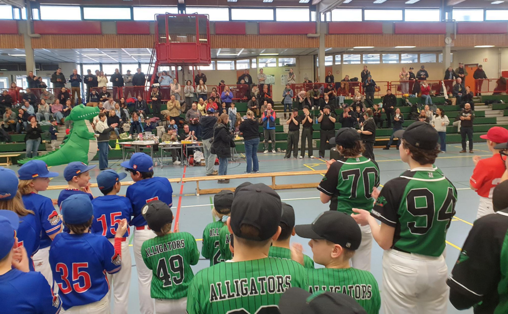 Aber vom Anfang an – U12 und U15 Teams aus Hamburg, Kiel, Holm und Lütjensee kamen zum 1. ALLIGATORS SWAMP CUP. 6 Spielende pro Team, kleines Feld, Softstitchbälle, 15 Minuten pro Spiel, professionelle Umpire und Spielschreiber, eine volle, gutgelaunte Tribüne – alles da!